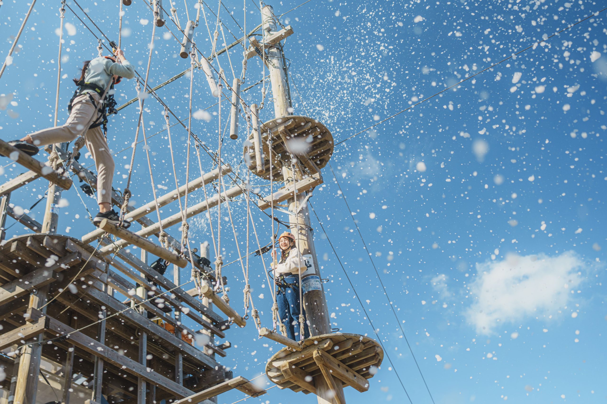 ▲まるで雪が降るかのような雰囲気で、アスレチックを楽しむことができますよ!
