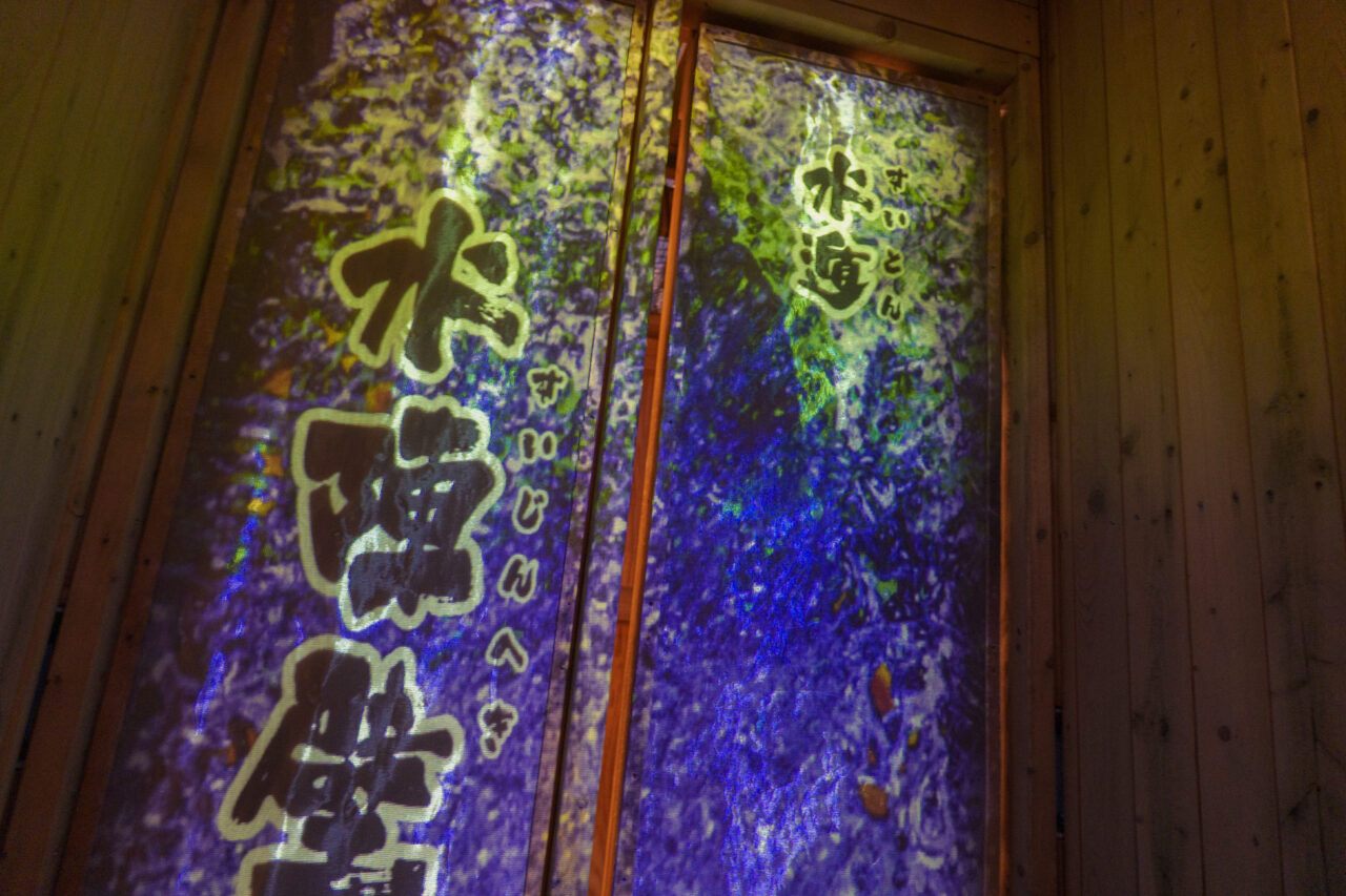 ▲スポットに設置されたモニターに向かって、正しい“ 印”を結ぶことで忍術が発動