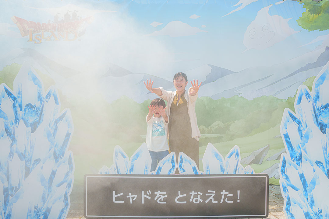 本クエストでは、アトラクション内のオノコガルド城下町に特別な「クールスポット」が登場。指定された場所にて、「ドラゴンクエスト」の氷系呪文“ヒャド”を唱えることで、極寒のミストシャワーが降り注ぎ、呪文を唱えた冒険者をクールダウンしてくれますよ!