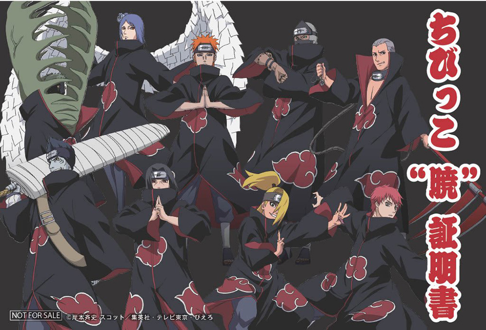 達成されたお子様には、「ちびっこ“暁”証明書」をプレゼントいたします!1人1人の生き様に、敵ながら人気の高い「暁」の一員になれるチャンス!動きやすくなる秋の季節に、最恐の忍集団の一員となるため、尾獣探しの任務に全力で取り組もう!