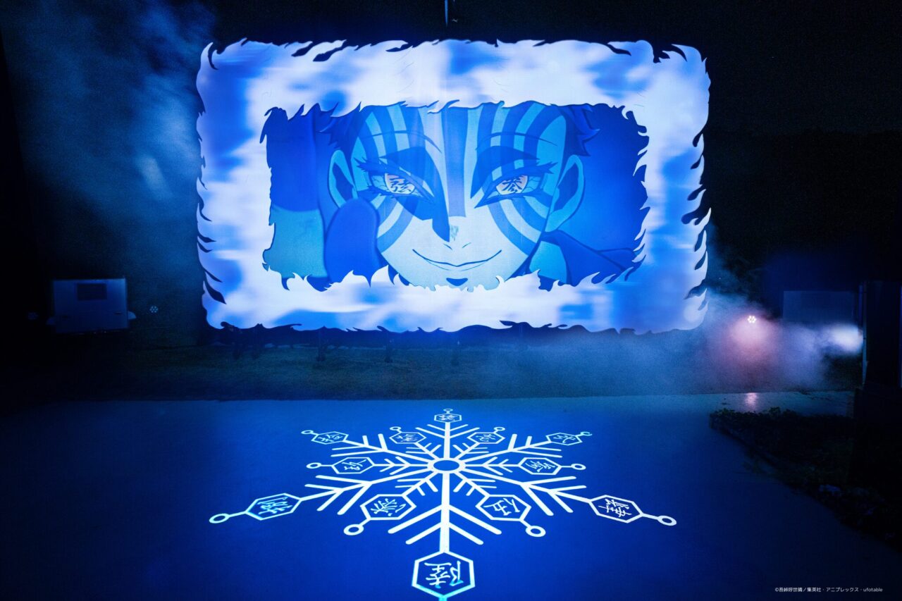 この前後でもさまざまな戦闘が皆さんの前で繰り広げられますが…、詳しい内容は現地に来てのお楽しみ。オーロラレーザー、プロジェクションマッピング、LED照明、スモークなど臨場感あふれる演出で、鬼殺隊士のみなさんをアニメ『鬼滅の刃』の世界へ誘います。どうぞご期待ください!