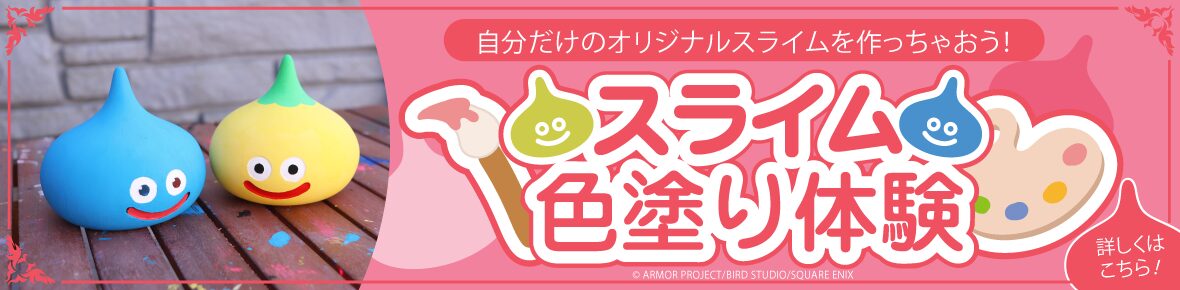 現在はスライムに加えて、羽を広げた姿が超キュートな「ドラキー」の素焼きも登場中!ご家族でスライムとドラキーを1つずつ体験される方もいらっしゃいますよ!選択肢の増えた「色塗り体験」、ぜひご体験くださいね!