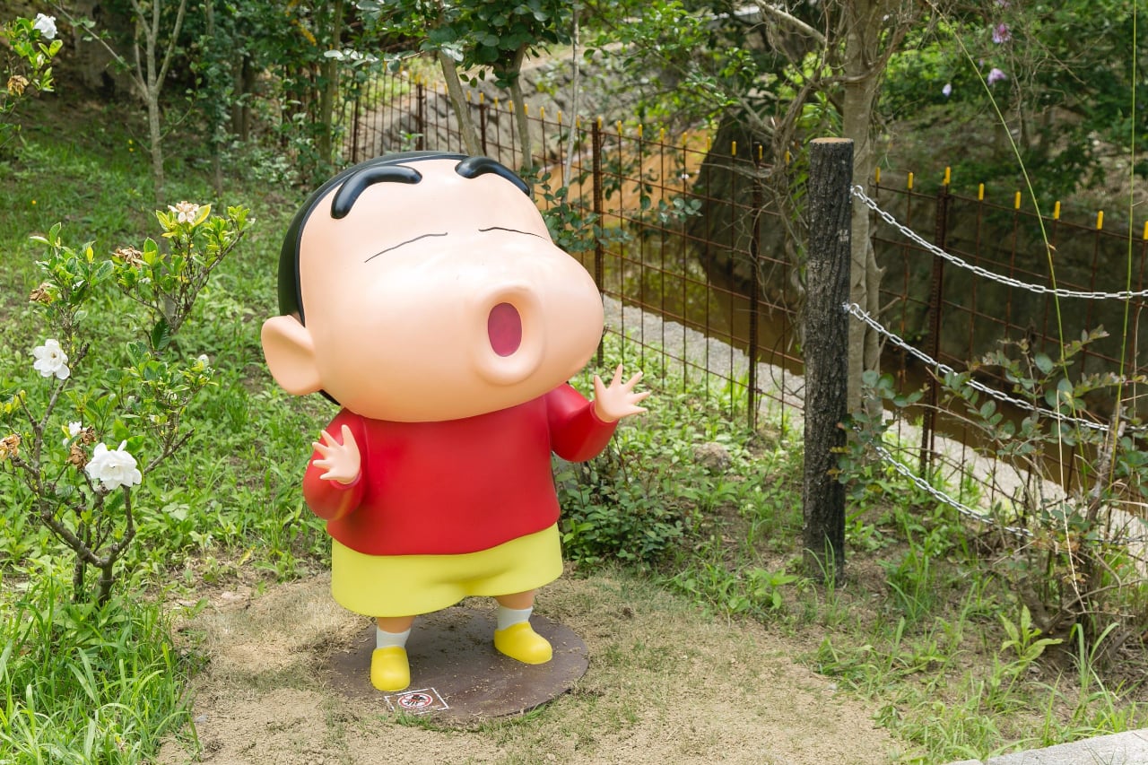 【立ち寄りもOK!】ニジゲンノモリ園内には「クレヨンしんちゃん」のおっきな立像がいっぱい!