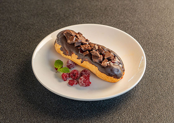アトラクション内のゴジラをイメージしたエクレアです。刻みチョコと赤いベリーソースは、まるでゴジラの背びれのよう!小腹が空いた時にもオススメのスイーツメニュー!