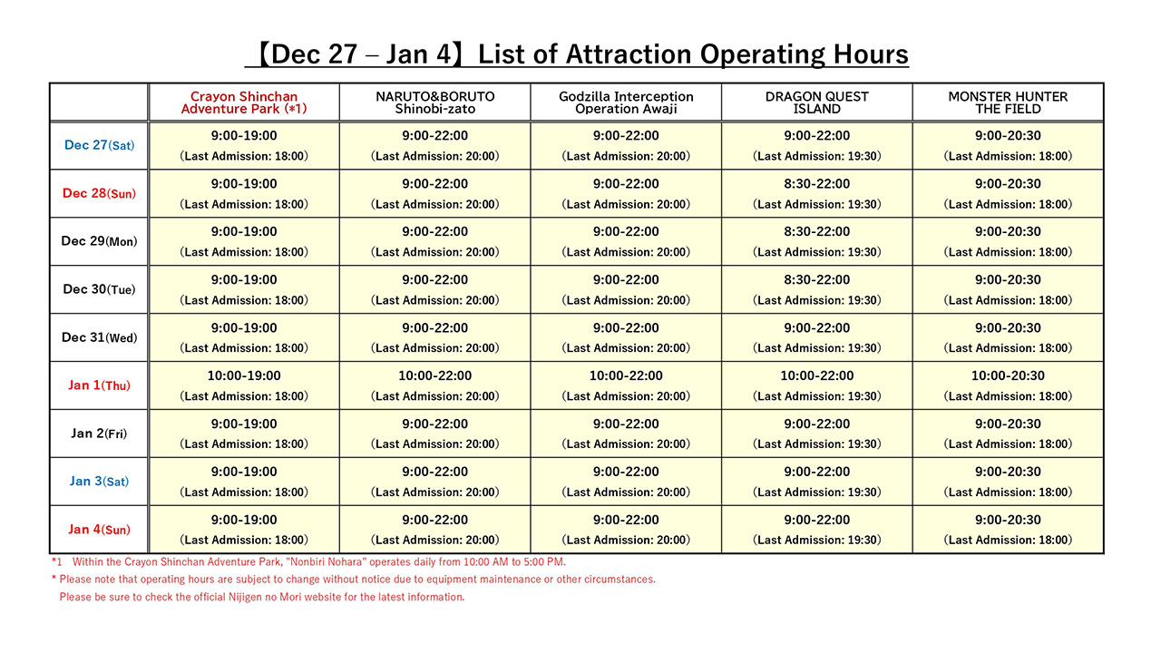 ニジゲンノモリは、年末年始も毎日営業しております!