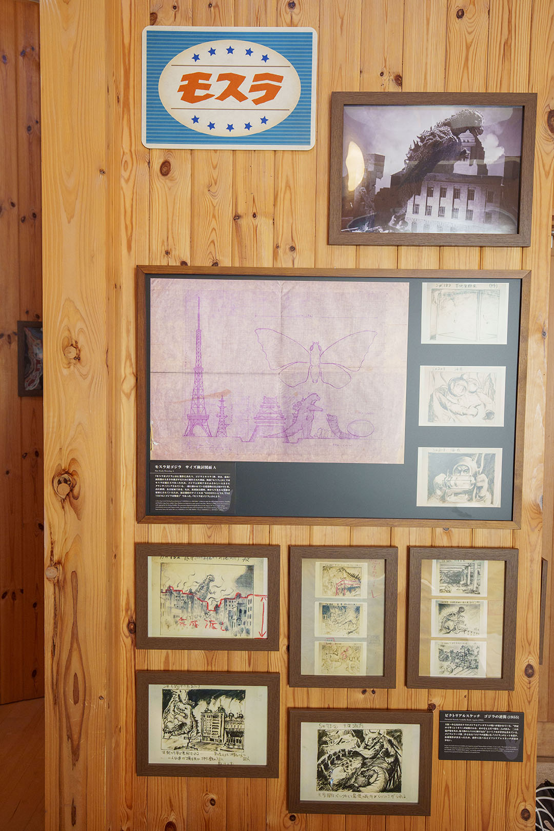 昭和の東宝特撮映画の劇中でゴジラと戦った兵器の立体展示や複製台本、絵コンテやスケッチなど、宿泊者の方しか見られない超貴重な資料の数々が並びます!