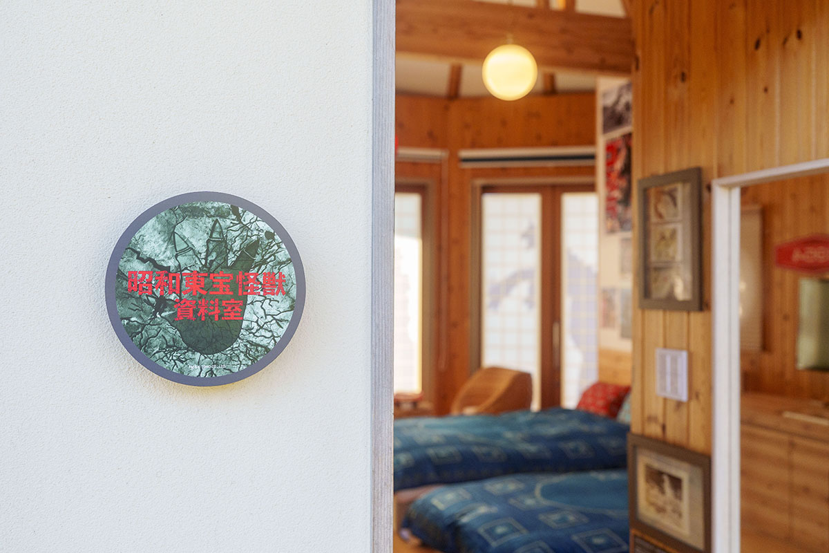 室内は“昭和レトロ”をモチーフに、ちゃぶ台や座布団、怪獣の名前が書かれたホーロー看板、障子風遮光カーテンなどが設置され、あの怪獣たちが登場した当時を振り返れるお部屋デザイン!一緒に昭和レトロをご満喫いただけます。