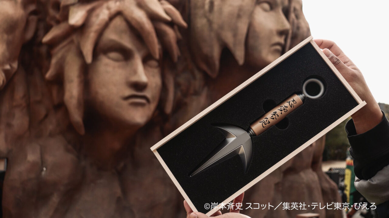 金属でできた本体に、持ち手の部分には実際に作中で刻まれていた文字までも完全再現!世界で唯一のプレミアムグッズです!