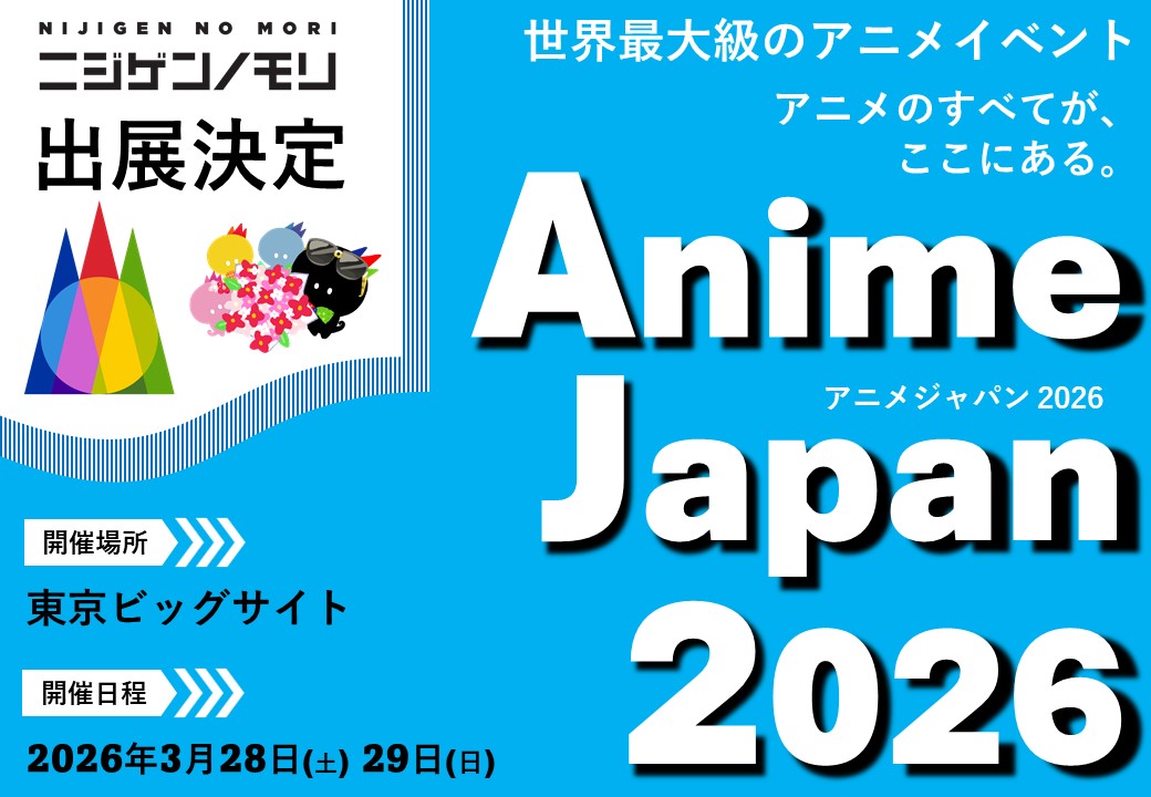 ニジゲンノモリ、世界最大級のアニメイベント 「AnimeJapan 2026」に出展! 人気アニメ・ゲームの世界観を体感できるブースやコラボグッズ販売を展開 3月28日(土)・29日(日)開催