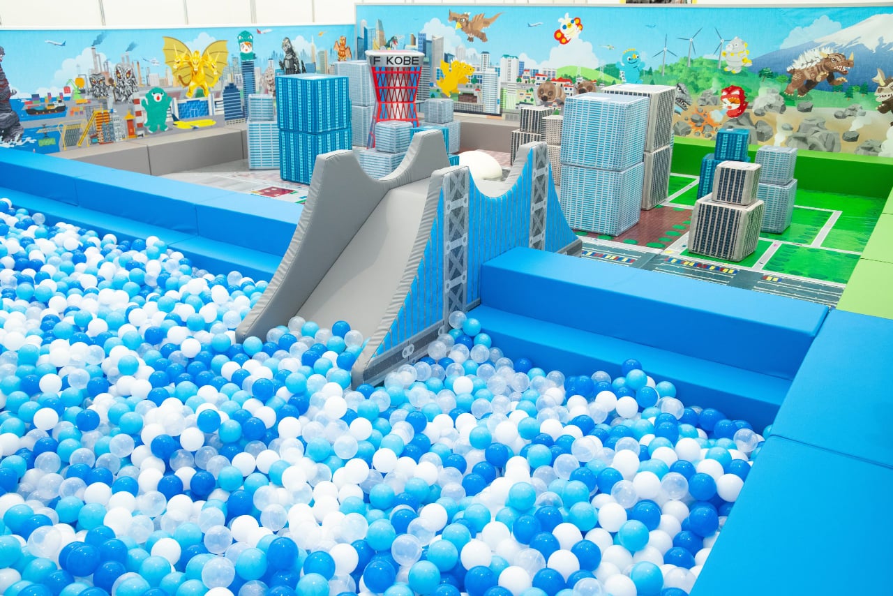 キッズエリア「カイジュウノモリ」では、立方体クッションやボールプールで再現された町並みの中で、お子様ご自身がかいじゅうになったように遊べちゃう!
