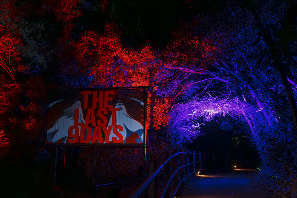 プロジェクションマッピング等で彩られた約1.2kmの夜の森を歩いて、尸魂界で巻き起こる「千年血戦」を見届けながら、チェックポイントを回ろう!