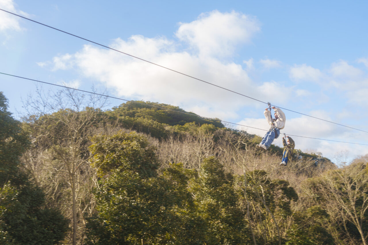 The zip line that takes you towards a life-size Godzilla, which is 120 meters long and currently inactive on Awaji Island, is extremely exhilarating!