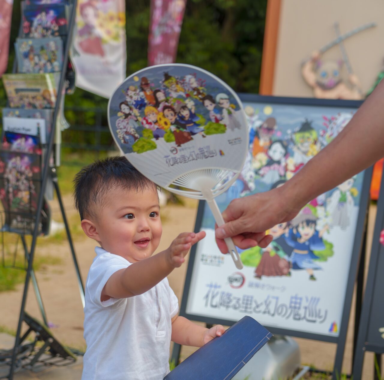 We are currently handing out "original fans" featuring the event key visuals as the third in the series of special novelty giveaways to those who attend the evening events "Mystery Solving Walk: A Tour of the Flowering Village and the Phantom Demon" or "Night Walk: The Path to the Infinite Castle"!