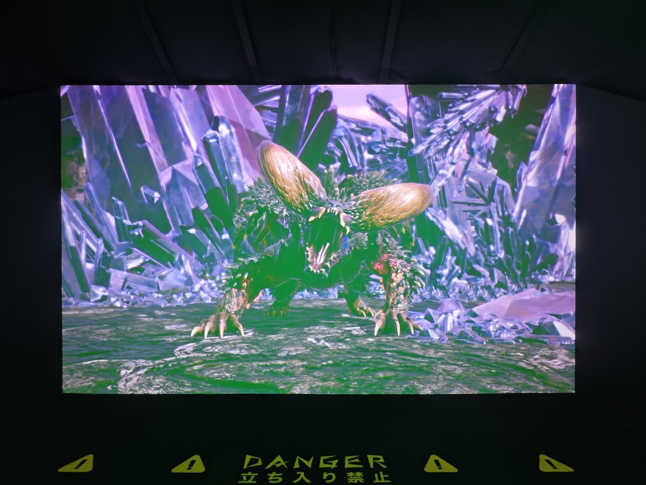 First, you will explore the vast 13㎡ field to find items and your Airou companions, then prepare to defeat a large monster in the hunting area at the back of the Awaji Gathering Hall. By wearing an action controller and a tracking device, the player on the screen will be linked to your location information. You will actually move around to avoid the attacks of large monsters, move to the appropriate distance (which varies depending on the weapon) and swing your weapon to attack! The aim is to succeed in defeating the monster within the time limit!