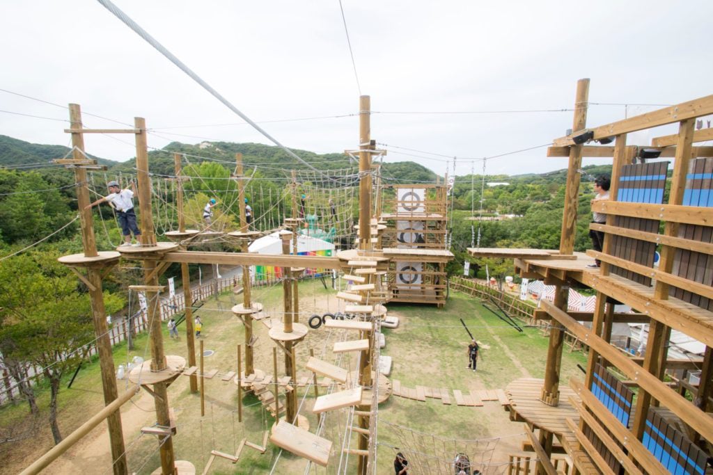높이 8.5m의 코스.가장 복잡한 장치와 어른이라도 놀랄만한 높이가 특징.새로운 장치 「타카 호랑이로부터의 도전장」등장으로 더욱 난이도 업!안전용 하네스를 착용하십시오. |