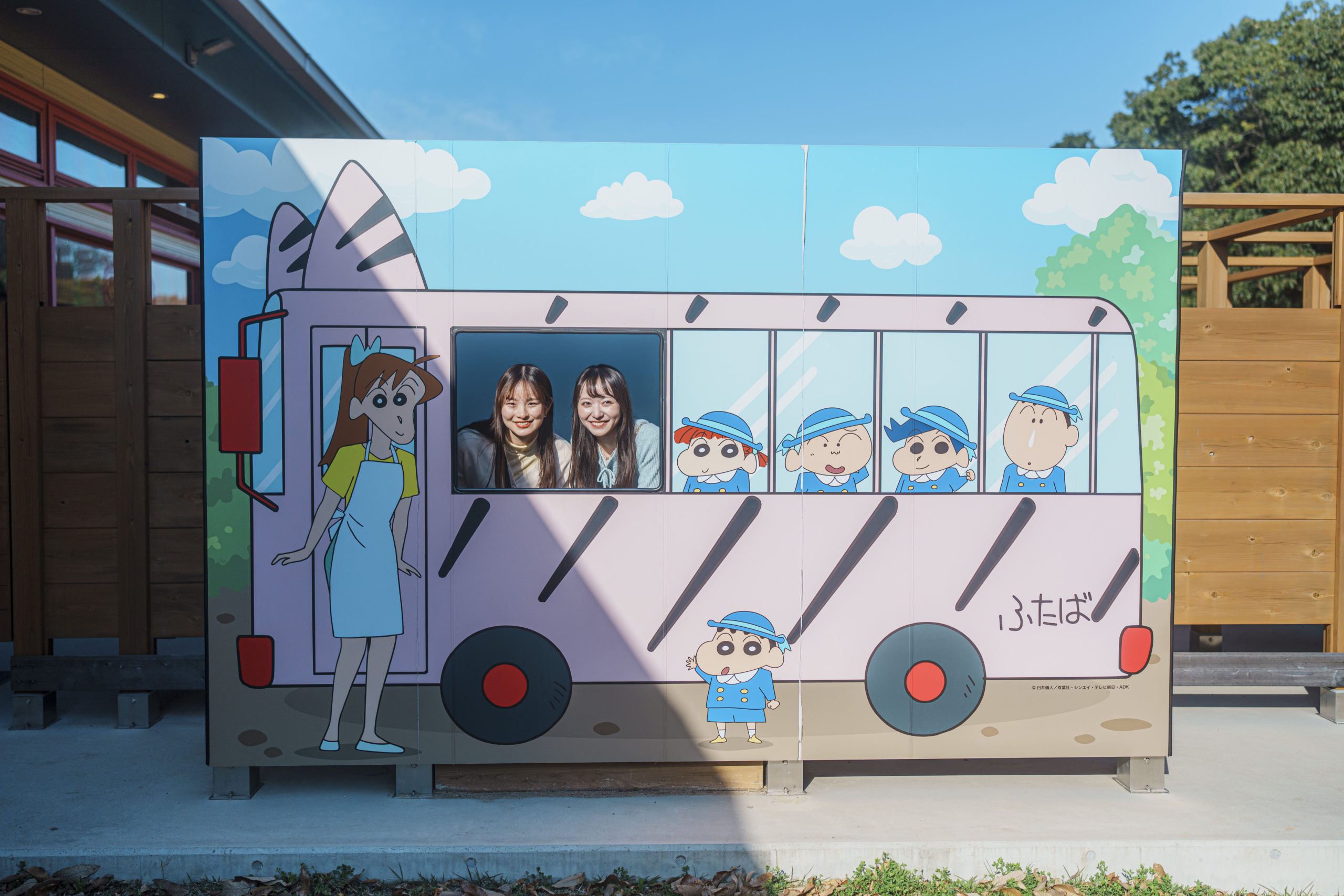 그렇지만, 이 트램의 제일의 매력은, 단지 이동 수단이 아닙니다.신짱들이 다니는 후타바 유치원 버스을 본뜬 디자인이 되어 있어, 마치 애니메이션 속에 들어간 것 같은 기분에 잠길 수 있습니다!
