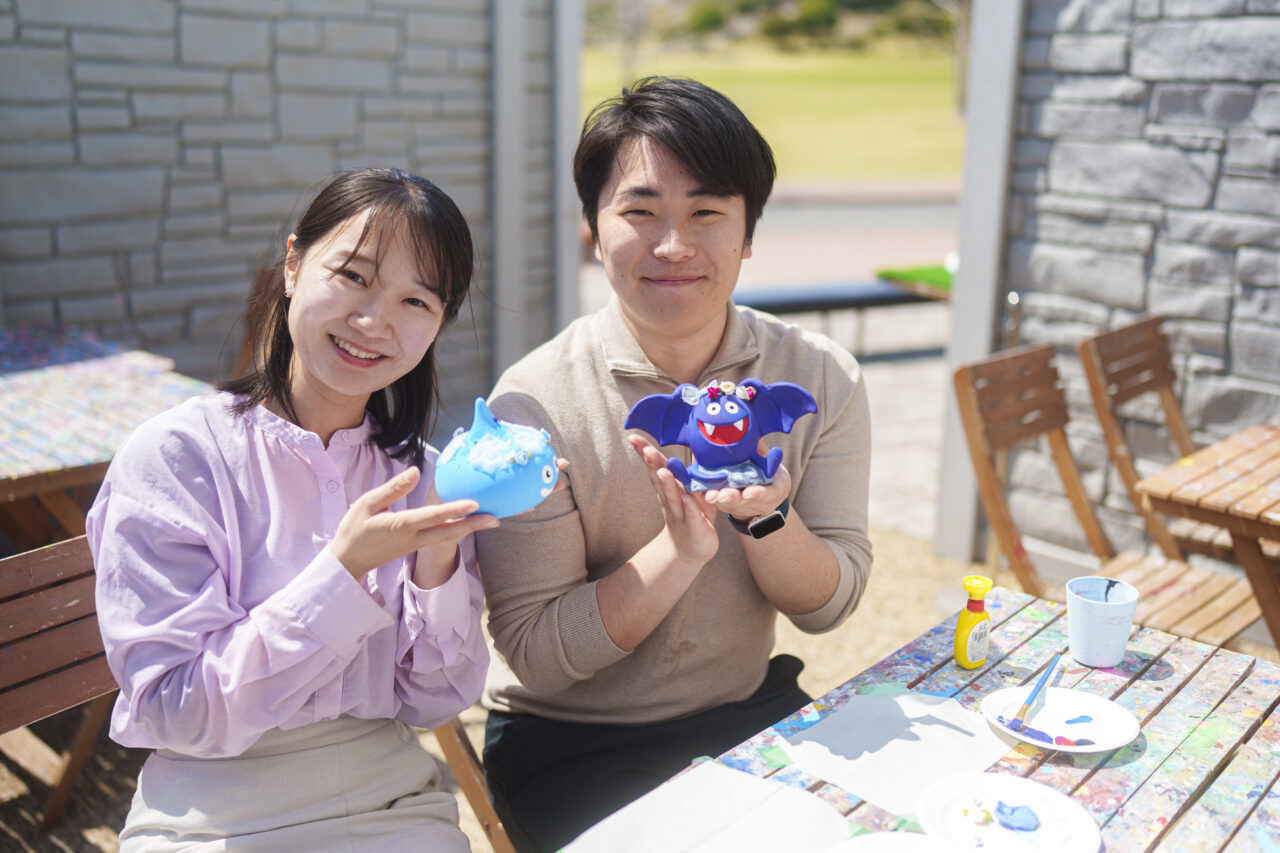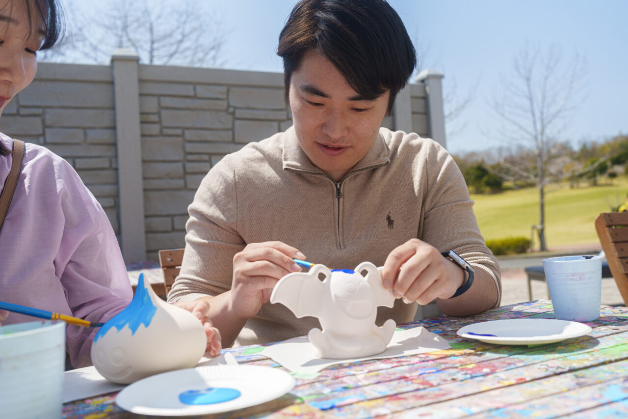 다음으로, 도자기의 슬라임에 페인트 개시!다채로운 페인트에서 원하는 색상을 선택하고 자유롭게 색상을 바르자!표정이나 눈의 색, 뺨에 티크를 넣어 보거나… 어레인지 무한대!
