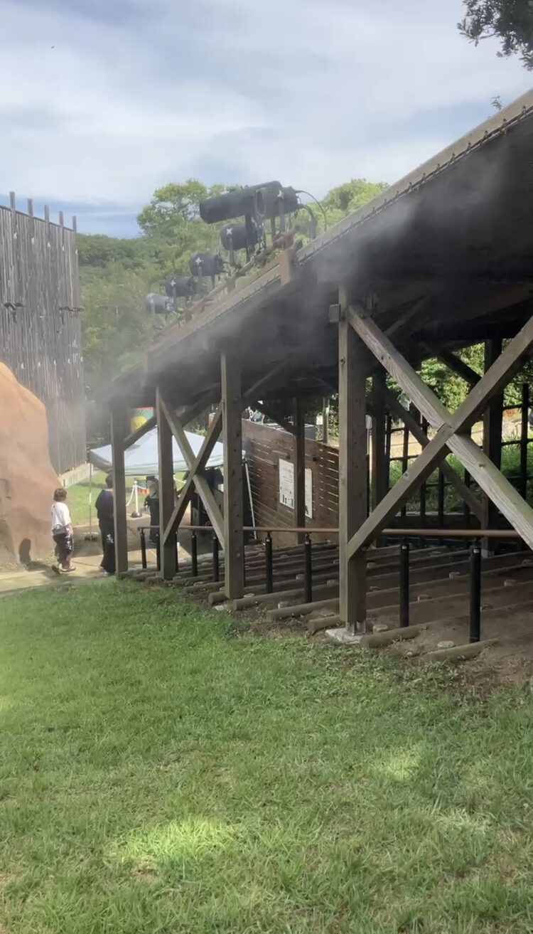 접수나 어트랙션 주변 등, 사람이 모이는 스폿에 안개 모양의 물을 분사하는 미스트 샤워를 설치하고 있습니다.