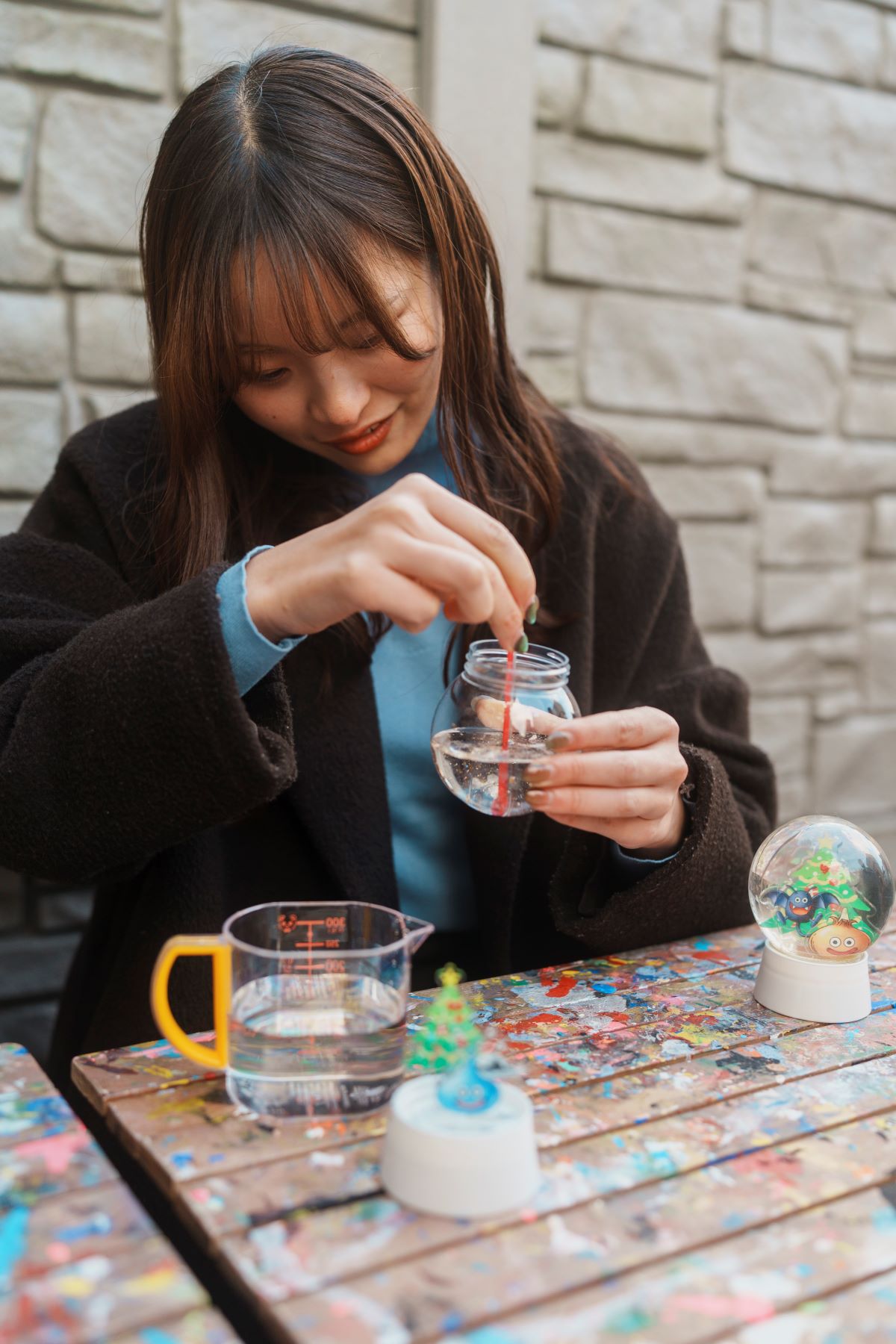 겨울만의 특별한 체험인 스노우 돔 제작 체험(2,700엔)에서는 몬스터나 성, 크리스마스 트리 등의 아크릴 스탠드를 자유롭게 조합해, 작은 드래곤 퀘스트의 세계가 손바닥 위에서 일어나는 순간을 맛볼 수 있습니다.