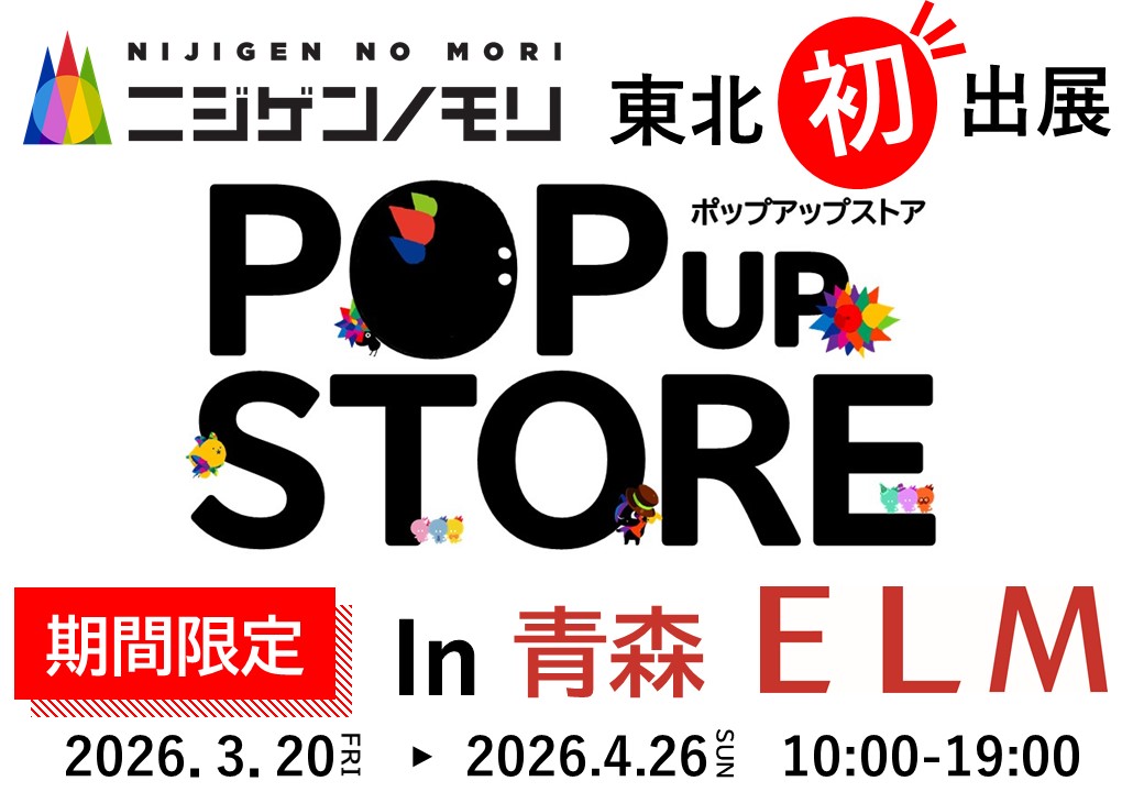 兵庫県淡路島にある「ニジゲンノモリ アニメ淡路島公園」にあるアニメパーク「ニジゲンノモリ」は、通常は現地でしか購入できないオリジナルグッズを中心に、過去最大級となる約1,000点の商品ラインナップを揃えた『ニジゲンノモリ POP UPストア』を、青森 ELMにて、2026年3月20日(金・祝)から4月26日(日)までの期間限定で開催いたします。