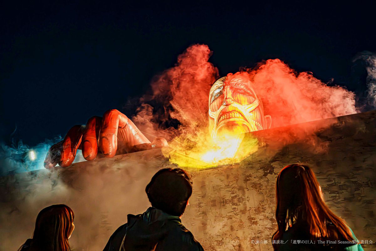 TVアニメ『進撃の巨人』の世界をニジゲンノモリの大自然の中に再現。