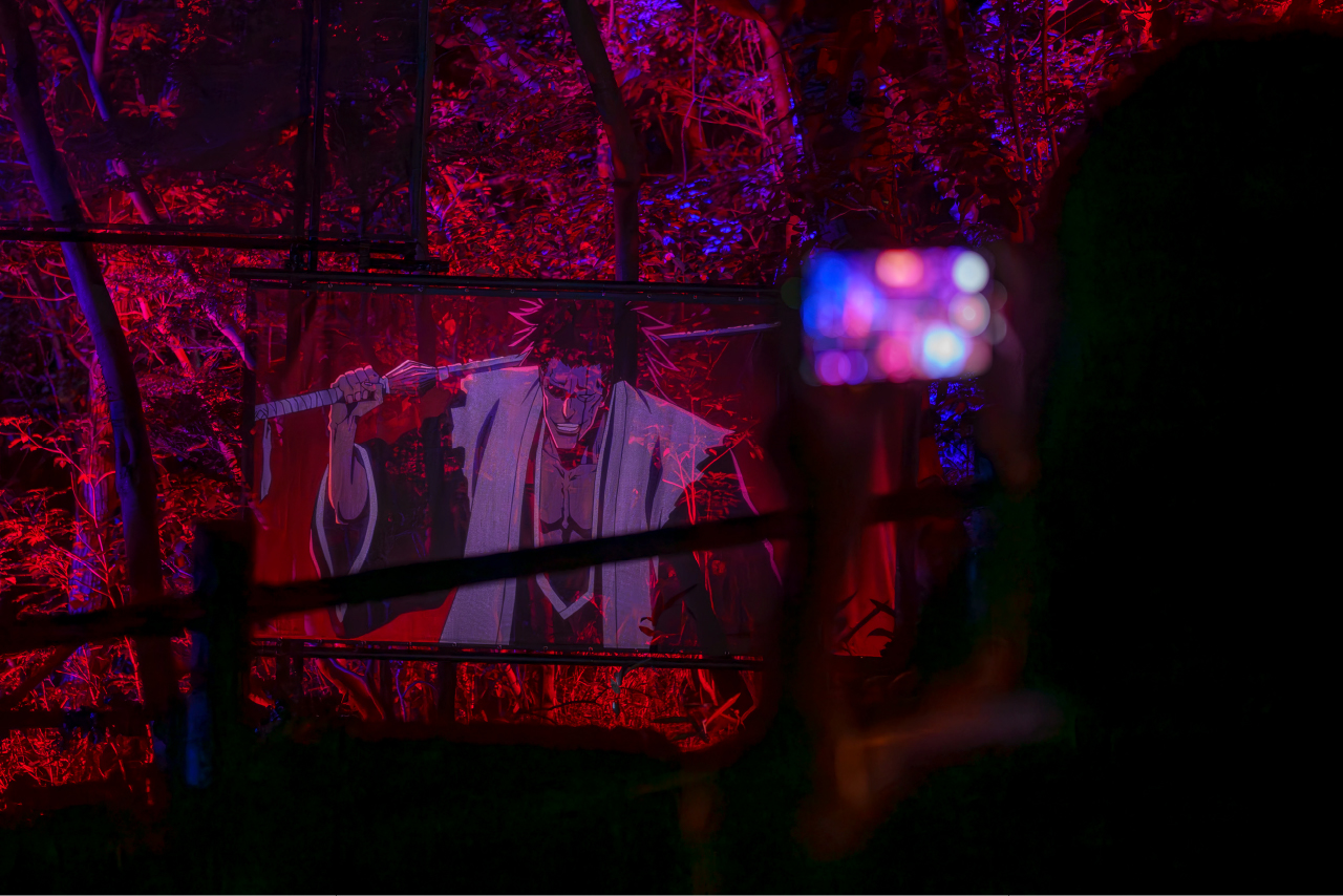 プロジェクションマッピング等で彩られた約1.2kmの夜の森を歩いて、尸魂界で巻き起こる「千年血戦」を見届けながら、チェックポイントを回ろう!