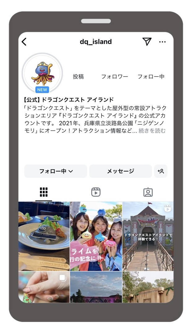 효고현립 아와지시마 공원 애니메이션 파크 「니지겐노모리」의 인기 인기 어트랙션 「드래곤 퀘스트 아일랜드」인스타그램 계정이 개설되었습니다! 「드래곤 퀘스트 아일랜드」공식 X와 함께 최신 정보를 발신해 가므로, 꼭 팔로우해 체크해 보세요!