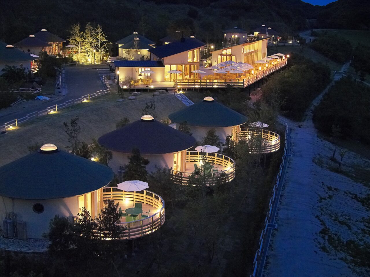 그란샤리오 호쿠토 칠성 135°는, 총 23실의 객실은 고치(코쿤)를 연상시키는 공간으로, 높이 5미터 이상의 채광창에서 바라보는 아사히나 밤하늘은, 바로 절경. 식사는, 국내외에 13 점포의 가게를 가져, 일본 대표 마스터 셰프인 야마시타 하루유키씨가 감수. 「어식국」으로서 조정에 식재료를 납입해 온 음식의 보고, 아와지시마의 식재료를 고집한 요리를 즐길 수 있습니다.