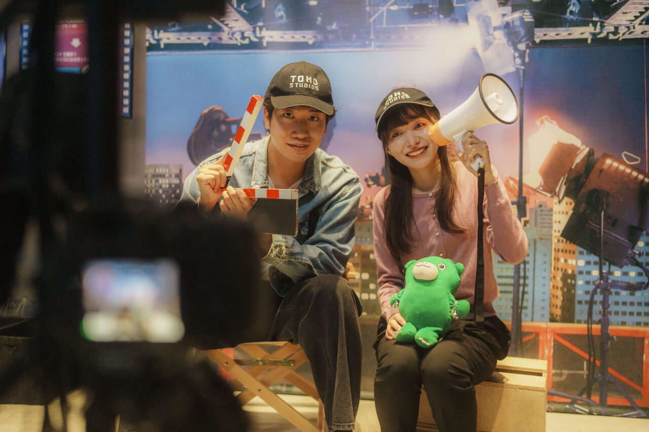 這是一個體驗式展覽,您可以成為電影導演,使用場記板和攝影棚佈景拍攝紀念照片,讓家人和朋友都能享受有趣的體驗!
